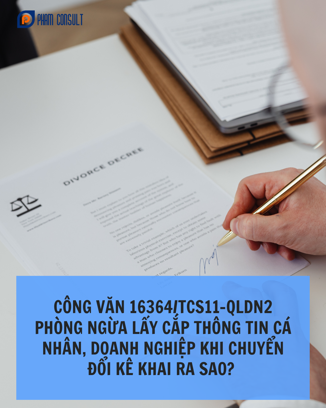 Công văn 16364/TCS11 QLDN2 phòng ngừa lấy cắp thông tin cá nhân, doanh nghiệp khi chuyển đổi kê khai, đồng thời hướng dẫn các biện pháp bảo mật, các quy trình an toàn cần thực hiện, cũng như những lưu ý quan trọng nhằm giúp người nộp thuế và doanh nghiệp tránh được các rủi ro liên quan đến việc lộ thông tin trong quá trình chuyển đổi. Hãy cùng Phạm Consult tìm hiểu thêm nhé!