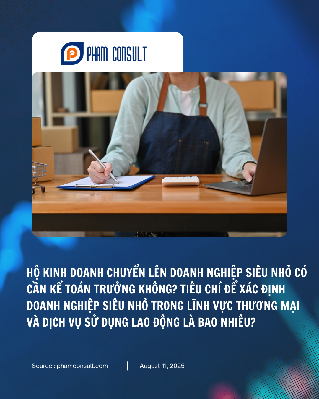 Khi hộ kinh doanh có nhu cầu mở rộng hoạt động và chuyển đổi lên mô hình doanh nghiệp, một trong những vấn đề được quan tâm là có cần bổ nhiệm kế toán trưởng hay không. Đồng thời, việc xác định doanh nghiệp sau khi chuyển đổi có thuộc diện doanh nghiệp siêu nhỏ trong lĩnh vực thương mại và dịch vụ cũng cần dựa trên các tiêu chí cụ thể về số lượng lao động đang sử dụng. Hãy cùng Phạm Consult tìm hiểu thêm nhé!